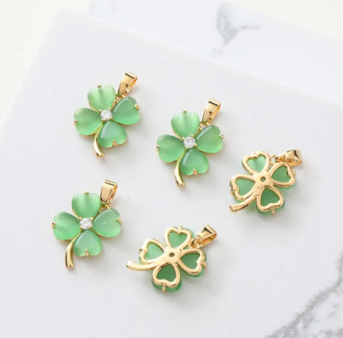 LUX Подвеска Клевер зелёный 15 мм, латунь позолота, 1 шт.