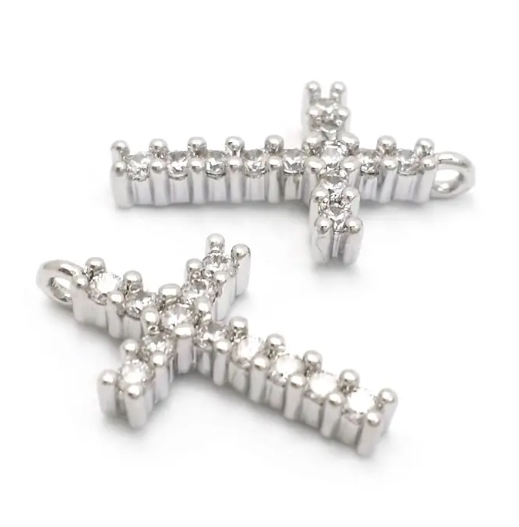 LUX Подвеска Крест с фианитами 15*9 мм, латунь покр. родием, 1 шт