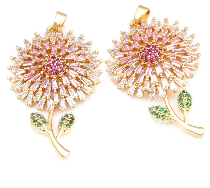 LUX Подвеска Одуванчик с фианитами 3,5*2,3 см, латунь, позолота, 1 шт