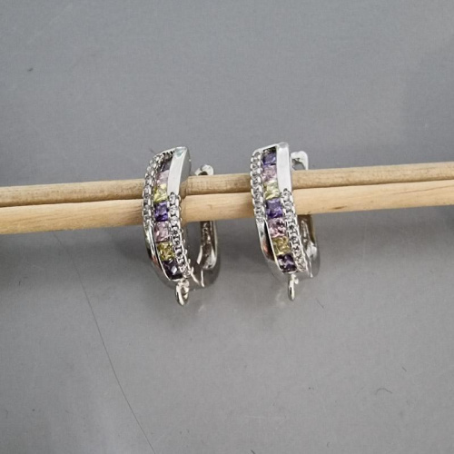 LUX Швензы 19*5 мм вставка фианиты фиолет. анг.замок, латунь, родий 1 пара.
