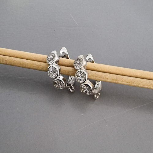 LUX Швензы круги с фианитами 16*4 мм анг.замок, латунь, родий 1 пара.