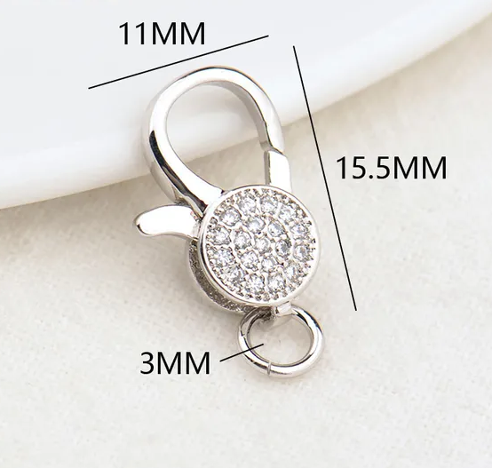 LUX Замок карабин с фианитами 11*15,5 мм, латунь, покрыт. родием, 1 шт.