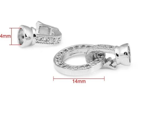 LUX Замок соединитель 14 мм Круг с фианитами, латунь, покрыт. родием, 1 шт