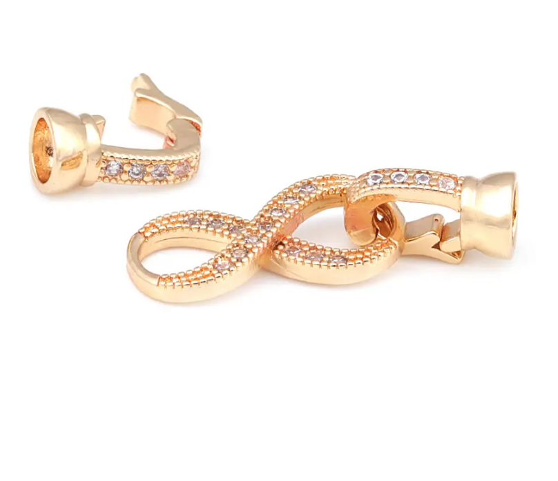 LUX Замок соединитель Бесконечность 20*9 мм с фианитами, латунь, позолота, 1 шт